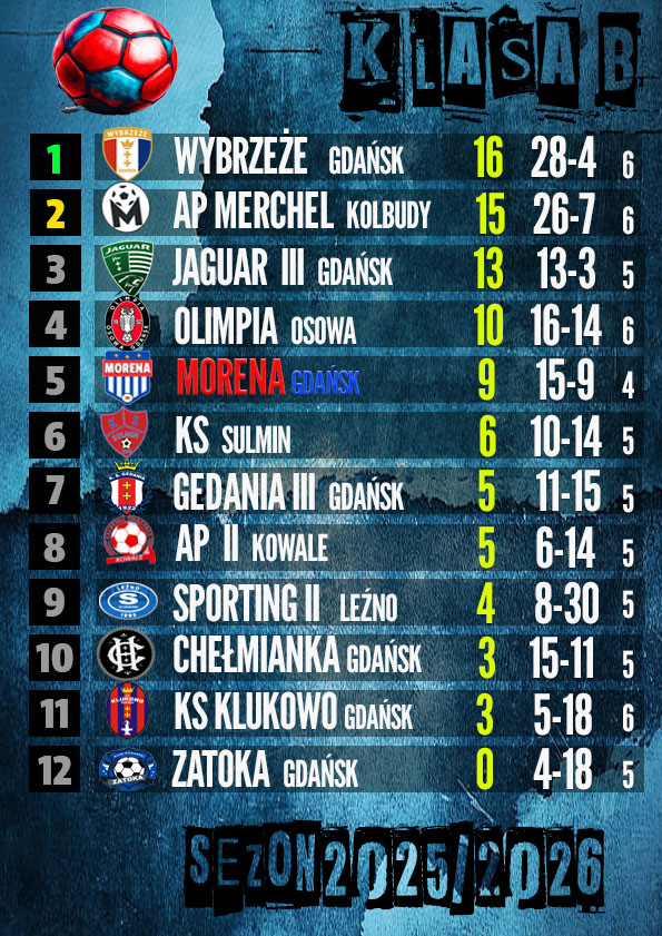 Passa wygranych przeszła do historii. Przegraliśmy w Kolbudach admin 14 września 2025 Nie udało się przywieźć z Kolbud dobrego wyniku. Gospodarze byli zbyt mocni dla nas i pewnie wygrali 6:2. Bramki dla Moreny zdobyli: Krystian Gaczoł /z karnego/ oraz Michał Gałuszewski. MECZ MERCHEL KOLBUDY vs. MORENA GDAŃSK