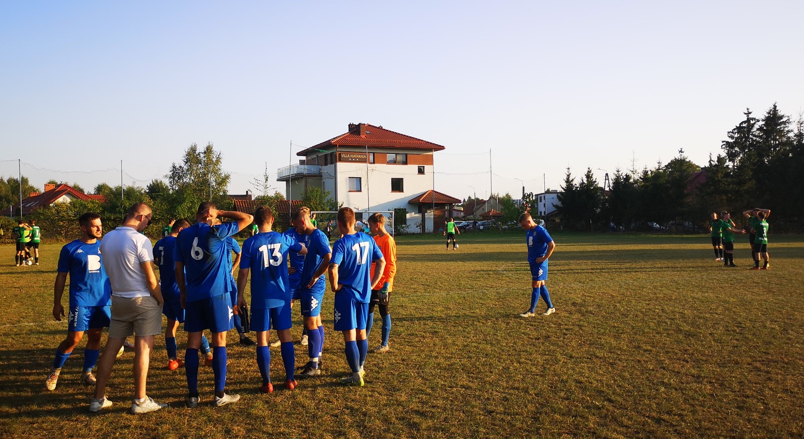 Po zmianie stron niewiele się zmieniło. My z piłką, ale bez specjalnych efektów, oni mocno wycofani liczący na stałe fragmenty gry. Niewiele się działo, jeśli nie liczyć kontuzji ręki Artioma, po popchnięciu przez rywala. Wszystko, co godne uwagi w tym meczu wydarzyło się po ostatniej przerwie na wodę. Na boisku pojawiło się kilku nowych zawodników w naszym składzie i zaczęło się wreszcie derbowe granie na poważnie. Gospodarzom nie zostało już wiele sił i wreszcie nasza przewaga fizyczna oraz ta w operowaniu piłką zrobiła swoje. Najpierw Tomek Robaczyński precyzyjnym strzałem z pola karnego wykończył podanie Macieja Zielińskiego, a chwilę potem Tomek „zmusił” obrońcę z Klukowa do efektownej przebitki w kierunku swojej bramki przelobowując własnego bramkarza. 3-0. Mogło i powinno być więcej. Strzał Patryka Nowaczyka z wolnego trafił w poprzeczkę, atak dwóch naszych zawodników sam na sam z bramkarzem zakończył się stratą piłki, gol Marcina Drewinga nie został zaliczony, bo sędzia jako jedyna osoba w Klukowie i okolicach nie zauważył piłki w siatce i jeszcze kilka innych naprawdę dobrych akcji, które powinny skończyć się kolejnymi bramkami dla Moreny. A że to derby, to jeszcze mieliśmy trochę emocji w końcówce. Najpierw mała zadyma po ostrym faulu bez piłki zawodnika z Klukowa, a potem w doliczonym czasie honorowy gol dla zespołu gospodarzy. Wygraliśmy 3-1 i w zasadzie to jest najważniejsze. A że nie wszystko wyglądało dobrze? Takie uroki tych zmagań B klasowych.